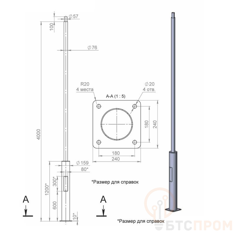 Опора ОП2ф-4.0-159/76/т57-(К240-180-4х20)-ц Пересвет 00-000510