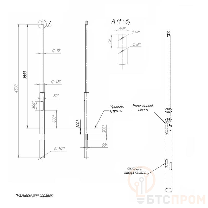 –Опора ОП2п-3.5-4.5-159/76/т57 оцинк. Пересвет 00-002987