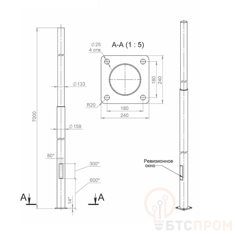 Опора ОП3ф-7.0-159/133/г-(К240-180-4х25) оцинк. Пересвет В00001401 фото в каталоге от BTSprom.by