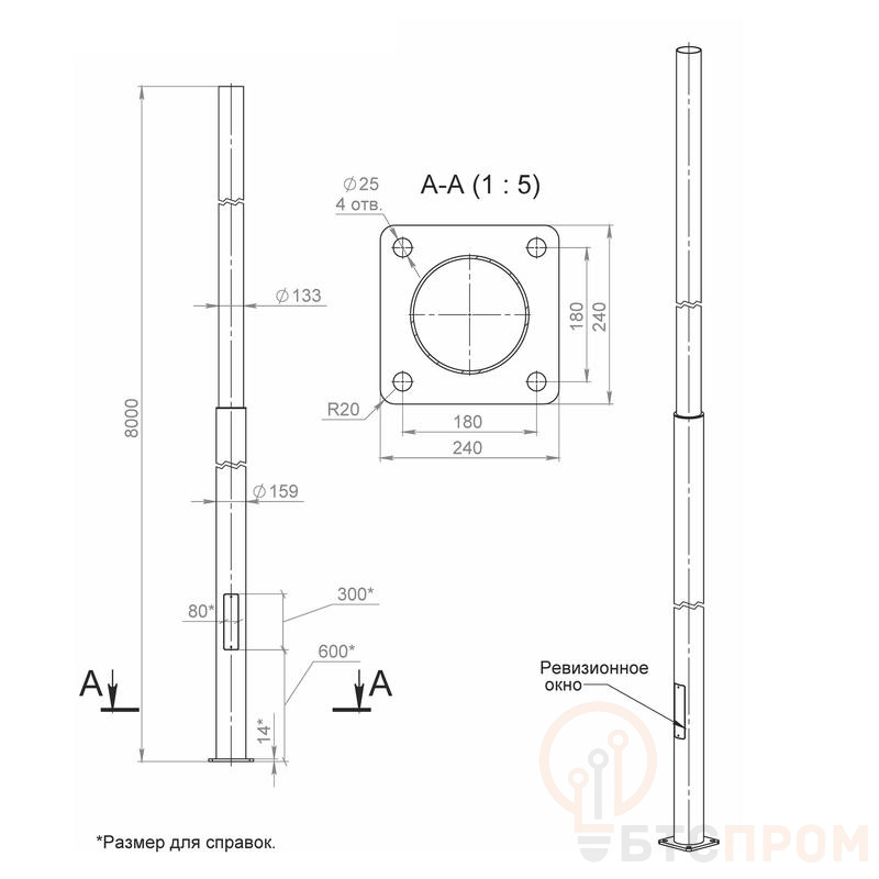 –Опора ОП3ф-8.0-159/133/г-(К240-180-4х25) оцинк. Пересвет В00003481