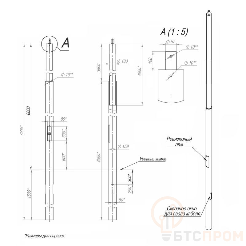 Опора ОП3п-6.0-7.5-159/133/т57 оцинк. Пересвет 00-003018 фото в каталоге от BTSprom.by