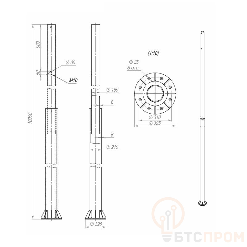Опора ОСф-0.3-10.0(Д395-310-8х25)-01 оцинк. Пересвет 00-003175 фото в каталоге от BTSprom.by