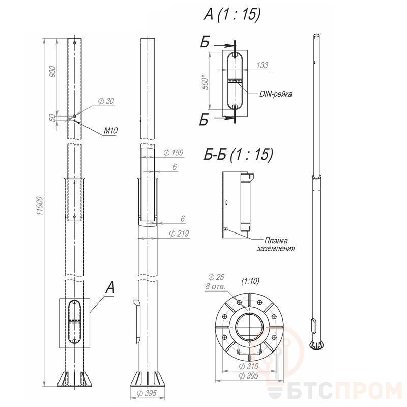 Опора ОСф-0.3-11.0(Д395-310-8х25)-02 оцинк. Пересвет 00-003181 фото в каталоге от BTSprom.by