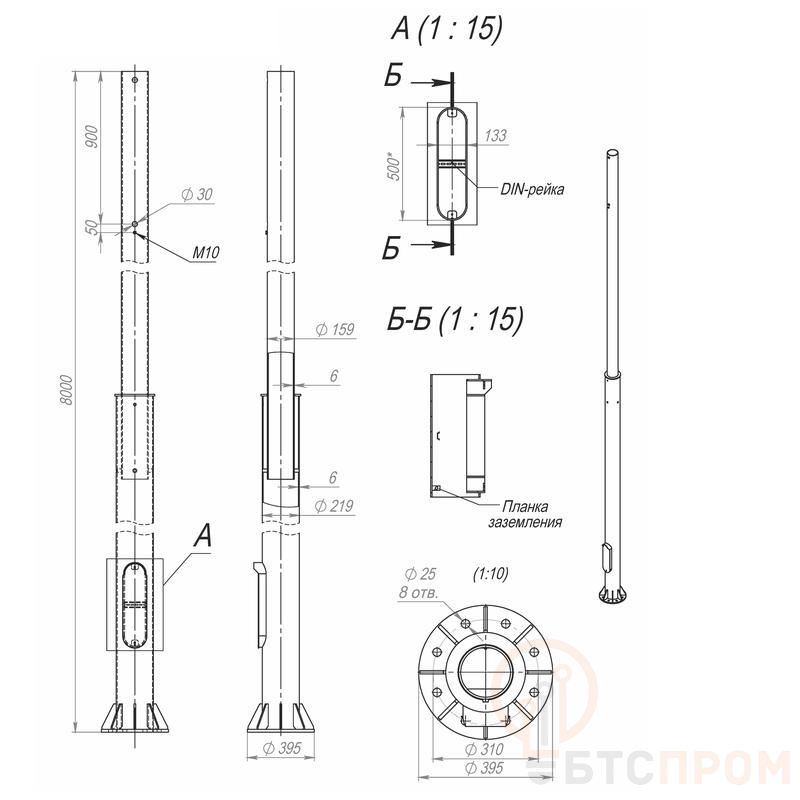 Опора ОСф-0.3-8.0(Д395-310-8х25)-02 оцинк. Пересвет 00-003177 фото в каталоге от BTSprom.by