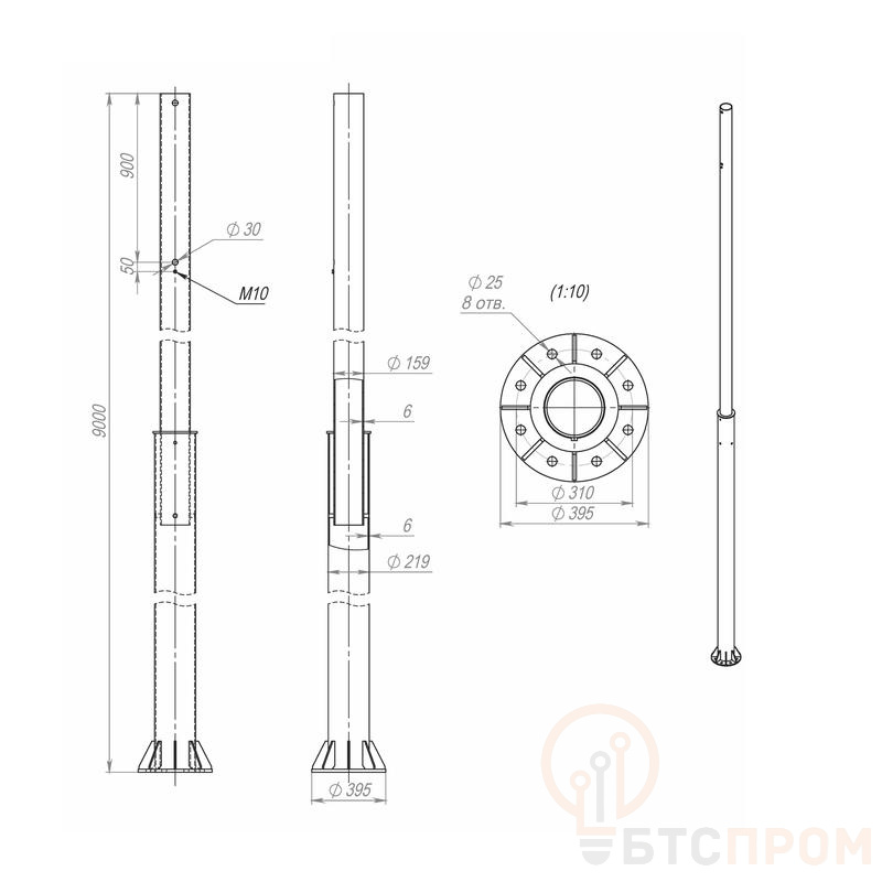 Опора ОСф-0.3-9.0(Д395-310-8х25)-01 оцинк. Пересвет 00-003174 фото в каталоге от BTSprom.by