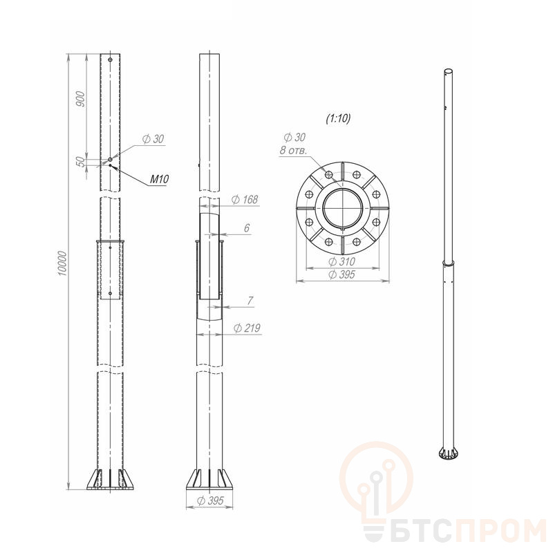 Опора ОСф-0.4-10.0(Д395-310-8х30)-01 оцинк. Пересвет 00-003157 фото в каталоге от BTSprom.by