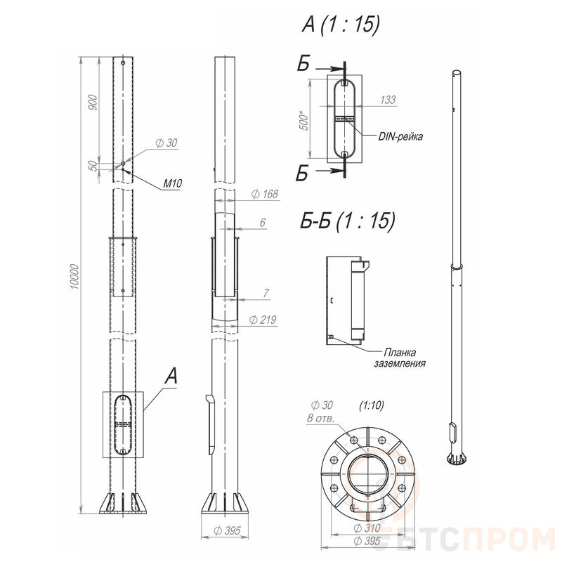 Опора ОСф-0.4-10.0(Д395-310-8х30)-02 оцинк. Пересвет 00-003164 фото в каталоге от BTSprom.by
