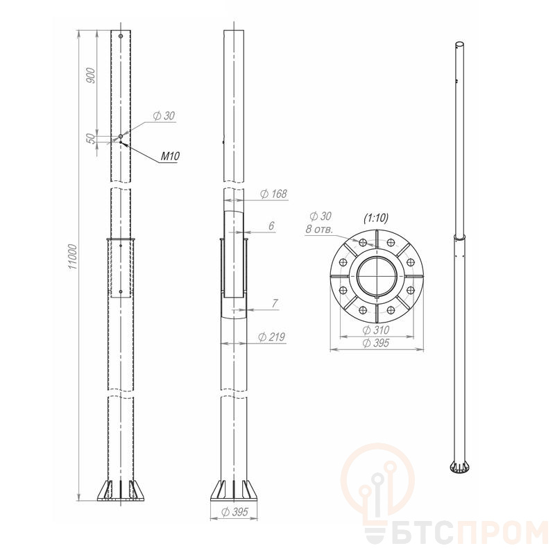 Опора ОСф-0.4-11.0(Д395-310-8х30)-01 оцинк. Пересвет 00-003158 фото в каталоге от BTSprom.by