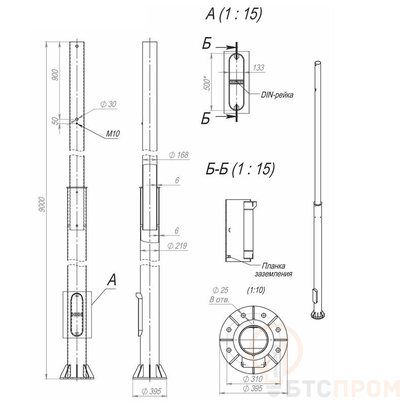 Опора ОСф-0.4-9.0(Д395-310-8х25)-02-ц Пересвет В00000762