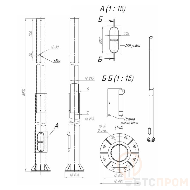 Опора ОСф-0.7-8.0(Д495-420-8х30)-02 оцинк. Пересвет 00-003166 фото в каталоге от BTSprom.by