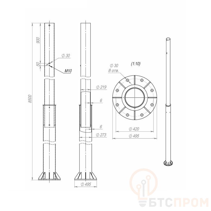 –Опора ОСф-0.7-8.5(Д495-420-8х30)-01-ц Пересвет В00001674
