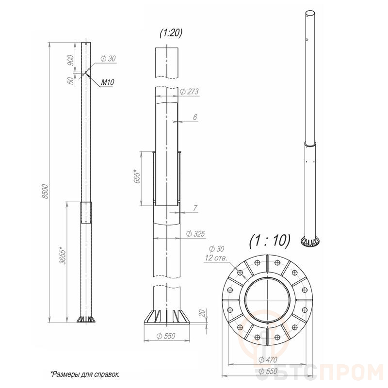 Опора ОСф-1.0-8.5(Д550-470-12х30)-01 оцинк. Пересвет В00002275 фото в каталоге от BTSprom.by