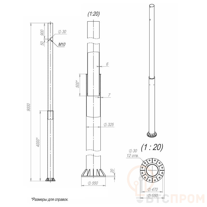 Опора ОСф-1.0-9.0(Д550-470-12х30)-01 оцинк. Пересвет 00-003159