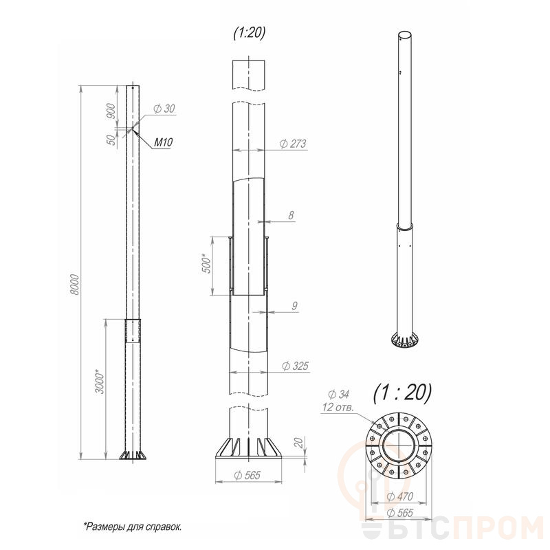 Опора ОСф-1.3-8.0(Д565-470-12х34)-01 оцинк. Пересвет 00-003162 фото в каталоге от BTSprom.by
