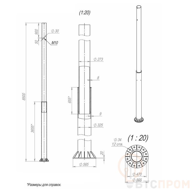 Опора ОСф-1.3-8.5(Д565-470-12х34)-02 оцинк. Пересвет 00-003192