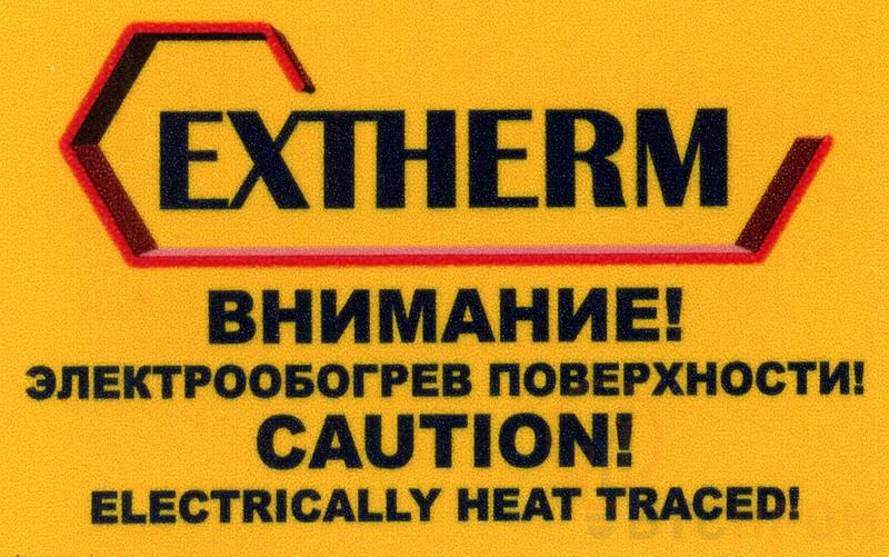 Этикетка Extherm Lab/E "Электрообогрев" наклеивается поверх теплоизоляции для оповещения службы эксплуатации о том, что под теплоизоляцией находятся электрические кабели.