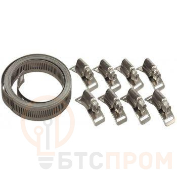 Хомут предназначен для крепления кронштейнов соединительных коробок непосредственно на поверхность обогреваемого объекта, а также для крепления нагревательных секций на базе кабеля с минеральной изоляцией MIC. Комплектность набора позволяет создавать червячные хомуты необходимого диаметра за короткое время без применения специального инструмента. С помощью хомута можно закрепить предназначенные для этого изделия к конструкциям и оборудованию любой формы и размеров. Преимущества: Простота и удобство монтажа - для монтажа достаточно отвертки; Повышенная прочность и коррозионостойкость материалов крепежа; Комплект: Хомут 3м, 8 замков