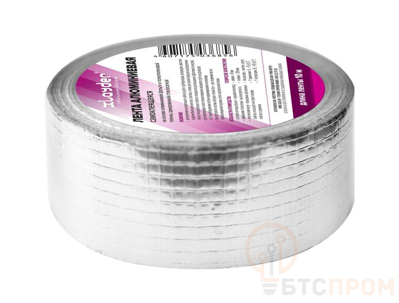 Лента алюминиевая самоклеящаяся на основе алюминиевой фольги и полиэтиленовой пленки, армированной стеклосеткой Назначение: · для крепления саморегулируемого нагревательного кабеля xLayder к трубопроводам, резервуарам, емкостям и другим объектам из металла, пластика, а также для лучшей передачи и распределения тепла от нагревательного кабеля к поверхности для повышения эффективности нагрева; · для герметизации стыков теплоизоляционных материалов труб и воздуховодов, в т.ч. при оборудовании систем кондиционирования и вентиляции. Технические характеристики: · ширина – 50 мм · толщина – 200 мкм · тип адгезива – синтетич. каучук · t° применения +5…+75 (±5) °C · t° эксплуатации -20…+95 (±5) °C