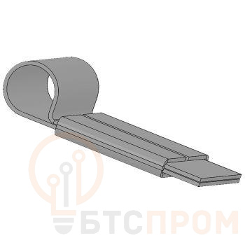 Применяется для крепления одной нитки круглого (резистивного) нагревательного кабеля к элементам кровли. Состоит из скобы и фиксатора. Расстояние от центра места расположения кабеля до края зажима - 25мм. Материал изготовления - медь.