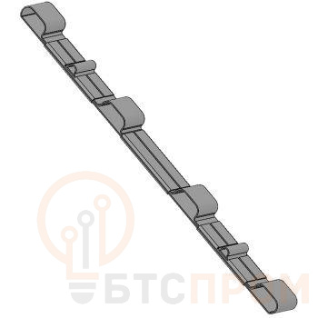 Применяется для крепления четырех ниток саморегулирующегося кабеля к двум ниткам троса. Назначение: Для снятия нагрузки с нагревательного кабеля Для крепления нитки нагревательного кабеля к тросу диаметром 2,8 мм Расстояние от центра места расположения кабеля до края зажима - 50мм Состоит из скобы и трех фиксаторов. Материал изготовления М - медь, П - пластизол, Ц - сталь оцинкованная