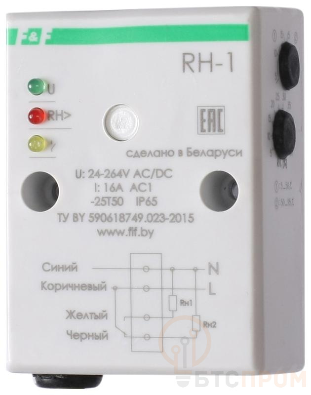 Реле контроля влажности RH-1 (четырехфункциональный встроен. датчик монтаж на плоскость) 230В 16А 1NO/NC IP20 F&F EA07.003.001