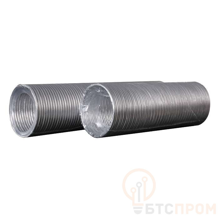 Воздуховоды спирально-навивные. Тип соединения ленты — тройной замок. Рабочая температура: от -30 до +300 °C. Максимальная длина в растянутом виде: 3 м. Материал: алюминиевая фольга.