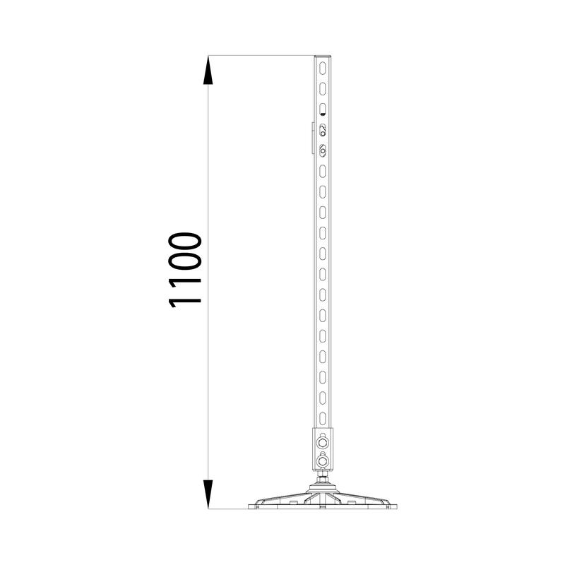 Указанные размеры являются максимальными. Рама регулируется в зависимости от присоединительных размеров устанавливаемого оборудования. Перед заказом комплектующих требуется произвести расчет снеговой и ветровой нагрузки для конкретного объекта поставки. Запрещается крепление кровельных опор к основанию. Крепежные элементы агрегата (болты, гайки, виброгасители и т.д.) в спецификацию опорной конструкции не входят, количество и размеры зависят от конкретного оборудования. Опора кровельная KM-TECHNORAPTOR-FOOT обеспечивает компенсацию уклона крыши до 8 градусов. Максимальная допустимая распределенная нагрузка на металлокаркас 80 кг. Данная конструкция изготовлена из стального страт-профиля с оцинкованным покрытием по методу Сендземира. Также возможно исполнение с покрытием профиля методом горячего цинкования.