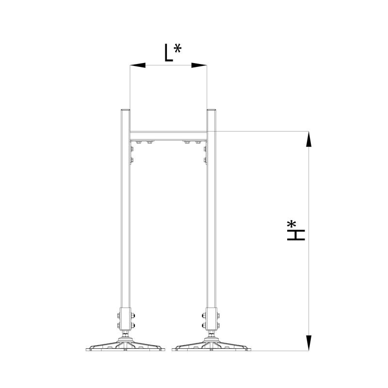 Указанные размеры являются максимальными. Рама регулируется в зависимости от присоединительных размеров устанавливаемого оборудования. Перед заказом комплектующих требуется произвести расчет снеговой и ветровой нагрузки для конкретного объекта поставки. Запрещается крепление кровельных опор к основанию. Крепежные элементы агрегата (болты, гайки, виброгасители и т.д.) в спецификацию опорной конструкции не входят, количество и размеры зависят от конкретного оборудования. Опора кровельная KM-TECHNORAPTOR-FOOT обеспечивает компенсацию уклона крыши до 8 градусов. Максимальная допустимая распределенная нагрузка на металлокаркас 200 кг. Данная конструкция изготовлена из стального страт-профиля с оцинкованным покрытием по методу Сендземира. Также возможно исполнение с покрытием профиля методом горячего цинкования.