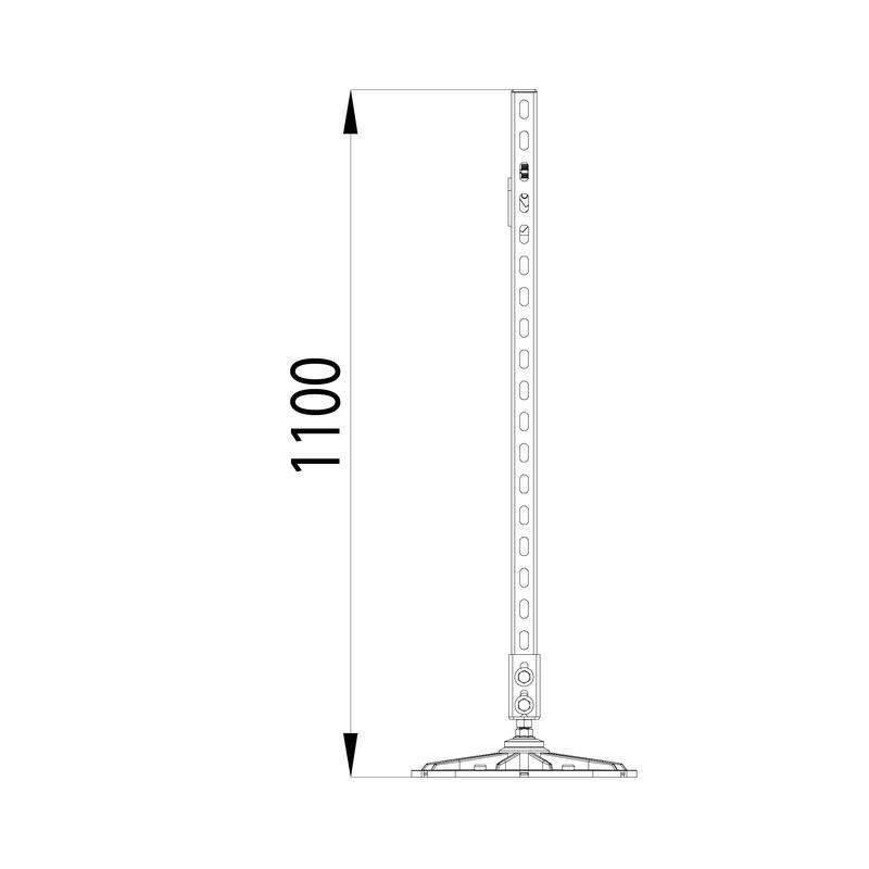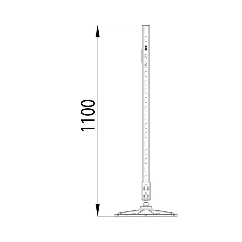 Указанные размеры являются максимальными. Рама регулируется в зависимости от присоединительных размеров устанавливаемого оборудования. Перед заказом комплектующих требуется произвести расчет снеговой и ветровой нагрузки для конкретного объекта поставки. Запрещается крепление кровельных опор к основанию. Крепежные элементы агрегата (болты, гайки, виброгасители и т.д.) в спецификацию опорной конструкции не входят, количество и размеры зависят от конкретного оборудования. Опора кровельная KM-TECHNORAPTOR-FOOT обеспечивает компенсацию уклона крыши до 8 градусов. Максимальная допустимая распределенная нагрузка на металлокаркас 200 кг. Данная конструкция изготовлена из стального страт-профиля с оцинкованным покрытием по методу Сендземира. Также возможно исполнение с покрытием профиля методом горячего цинкования.