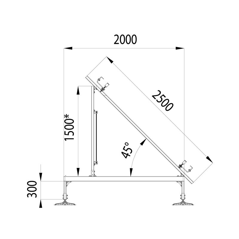 Указанные размеры являются максимальными. Рама регулируется в зависимости от присоединительных размеров устанавливаемого оборудования. Перед заказом комплектующих требуется произвести расчет снеговой и ветровой нагрузки для конкретного объекта поставки. Запрещается крепление кровельных опор к основанию. Крепежные элементы агрегата (болты, гайки, виброгасители и т.д.) в спецификацию опорной конструкции не входят, количество и размеры зависят от конкретного оборудования. Опора кровельная KM-TECHNORAPTOR-FOOT обеспечивает компенсацию уклона крыши до 8 градусов.При использовании в 3 и 4 ветровых зонах требуется утяжеление каркаса не менее 60 кг на 1кв.м солнечной панели или установка растяжек к несущем конструкциям. Данная конструкция изготовлена из стального страт-профиля с оцинкованным покрытием по методу Сендземира. Также возможно исполнение с покрытием профиля методом горячего цинкования.