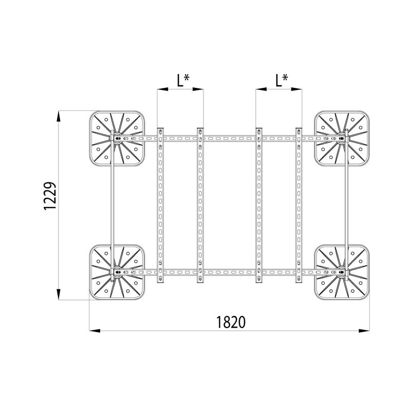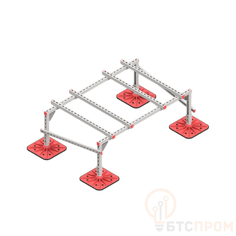 Указанные размеры являются максимальными. Рама регулируется в зависимости от присоединительных размеров устанавливаемого оборудования. Перед заказом комплектующих требуется произвести расчет снеговой и ветровой нагрузки для конкретного объекта поставки. Запрещается крепление кровельных опор к основанию. Крепежные элементы агрегата (болты, гайки, виброгасители и т.д.) в спецификацию опорной конструкции не входят, количество и размеры зависят от конкретного оборудования. Опора кровельная KM-TECHNORAPTOR-FOOT обеспечивает компенсацию уклона крыши до 8 градусов. Максимальная допустимая распределенная нагрузка на металлокаркас 250 кг. Изделие оцинковано методом горячего погружения согласно ГОСТ 9.307-2021.