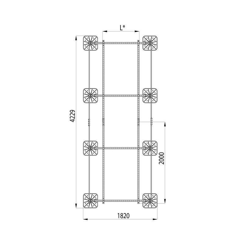 Указанные размеры являются максимальными. Рама регулируется в зависимости от присоединительных размеров устанавливаемого оборудования. Перед заказом комплектующих требуется произвести расчет снеговой и ветровой нагрузки для конкретного объекта поставки. Запрещается крепление кровельных опор к основанию. Крепежные элементы агрегата (болты, гайки, виброгасители и т.д.) в спецификацию опорной конструкции не входят, количество и размеры зависят от конкретного оборудования. Опора кровельная KM-TECHNORAPTOR-FOOT обеспечивает компенсацию уклона крыши до 8 градусов. Максимальная допустимая распределенная нагрузка на металлокаркас 500 кг. Изделие оцинковано методом горячего погружения согласно ГОСТ 9.307-2021.