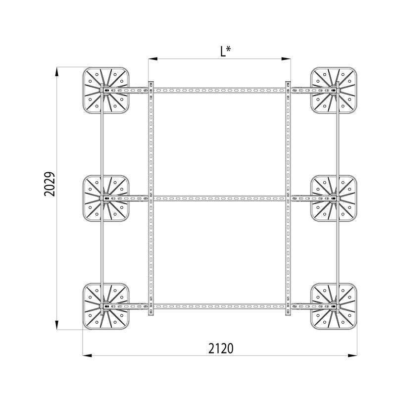Указанные размеры являются максимальными. Рама регулируется в зависимости от присоединительных размеров устанавливаемого оборудования. Перед заказом комплектующих требуется произвести расчет снеговой и ветровой нагрузки для конкретного объекта поставки. Запрещается крепление кровельных опор к основанию. Крепежные элементы агрегата (болты, гайки, виброгасители и т.д.) в спецификацию опорной конструкции не входят, количество и размеры зависят от конкретного оборудования. Опора кровельная KM-TECHNORAPTOR-FOOT обеспечивает компенсацию уклона крыши до 8 градусов. Максимальная допустимая распределенная нагрузка на металлокаркас 430 кг. Данная конструкция изготовлена из стального страт-профиля с оцинкованным покрытием по методу Сендземира. Также возможно исполнение с покрытием профиля методом горячего цинкования.