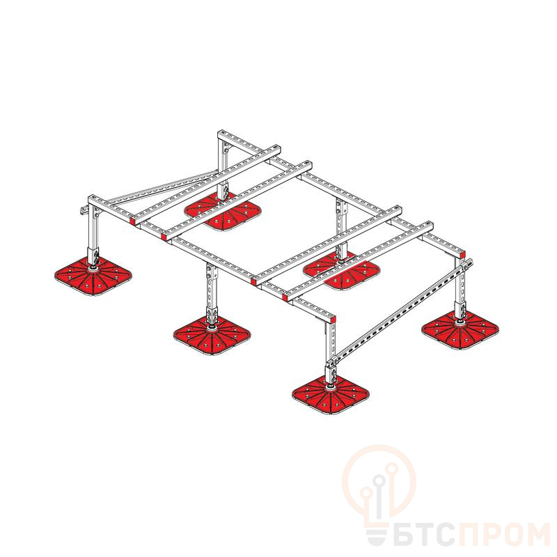 Указанные размеры являются максимальными. Рама регулируется в зависимости от присоединительных размеров устанавливаемого оборудования. Перед заказом комплектующих требуется произвести расчет снеговой и ветровой нагрузки для конкретного объекта поставки. Запрещается крепление кровельных опор к основанию. Крепежные элементы агрегата (болты, гайки, виброгасители и т.д.) в спецификацию опорной конструкции не входят, количество и размеры зависят от конкретного оборудования. Опора кровельная KM-TECHNORAPTOR-FOOT обеспечивает компенсацию уклона крыши до 8 градусов. Максимальная допустимая распределенная нагрузка на металлокаркас 800 кг. Изделие оцинковано методом горячего погружения согласно ГОСТ 9.307-2021.