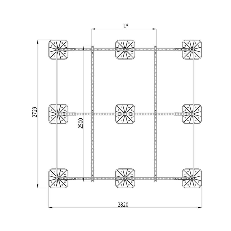 Указанные размеры являются максимальными. Рама регулируется в зависимости от присоединительных размеров устанавливаемого оборудования. Перед заказом комплектующих требуется произвести расчет снеговой и ветровой нагрузки для конкретного объекта поставки. Запрещается крепление кровельных опор к основанию. Крепежные элементы агрегата (болты, гайки, виброгасители и т.д.) в спецификацию опорной конструкции не входят, количество и размеры зависят от конкретного оборудования. Опора кровельная KM-TECHNORAPTOR-FOOT обеспечивает компенсацию уклона крыши до 8 градусов. Максимальная допустимая распределенная нагрузка на металлокаркас 1300 кг. Изделие оцинковано методом горячего погружения согласно ГОСТ 9.307-2021.