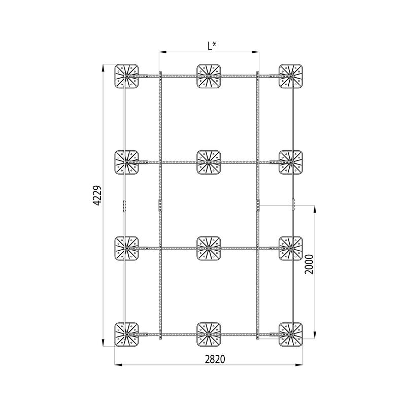 Указанные размеры являются максимальными. Рама регулируется в зависимости от присоединительных размеров устанавливаемого оборудования. Перед заказом комплектующих требуется произвести расчет снеговой и ветровой нагрузки для конкретного объекта поставки. Запрещается крепление кровельных опор к основанию. Крепежные элементы агрегата (болты, гайки, виброгасители и т.д.) в спецификацию опорной конструкции не входят, количество и размеры зависят от конкретного оборудования. Опора кровельная KM-TECHNORAPTOR-FOOT обеспечивает компенсацию уклона крыши до 8 градусов. Максимальная допустимая распределенная нагрузка на металлокаркас 1650 кг. Изделие оцинковано методом горячего погружения согласно ГОСТ 9.307-2021.
