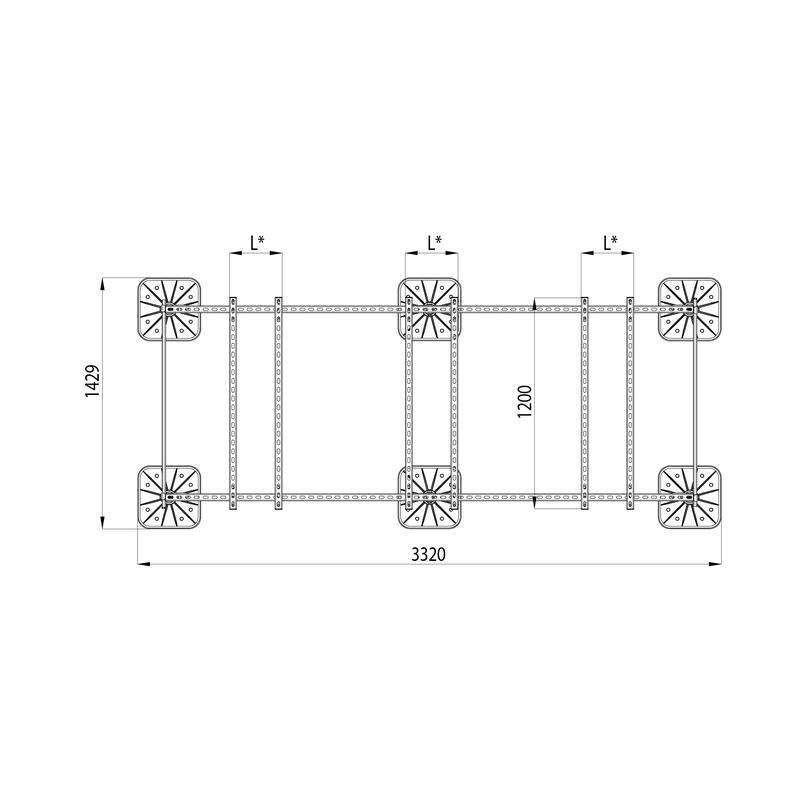 Конструкция опорная для установки оборудования TECHNORAPTOR FOOT 3000х1200 тип 2 KM-TR-F-SSEI-3000-1200-2 КМ TR0056
