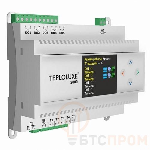 Контроллер Teploluxe 2000 используется для управления системами антиобледенения кровли и открытых площадок, обогрева трубопроводов и резервуаров, а также системами обогрева помещений (электрическими нагревательными кабелями, плёночными и другими электронагревателями).