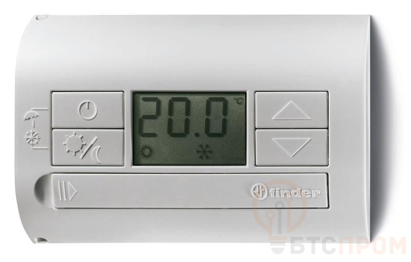 Термостат комнатный 3В DC 1СО 5А монтаж на стену кнопки ВКЛ/ВЫКЛ ЛЕТО/ЗИМА дисплей черн. FINDER 1T3190032000
