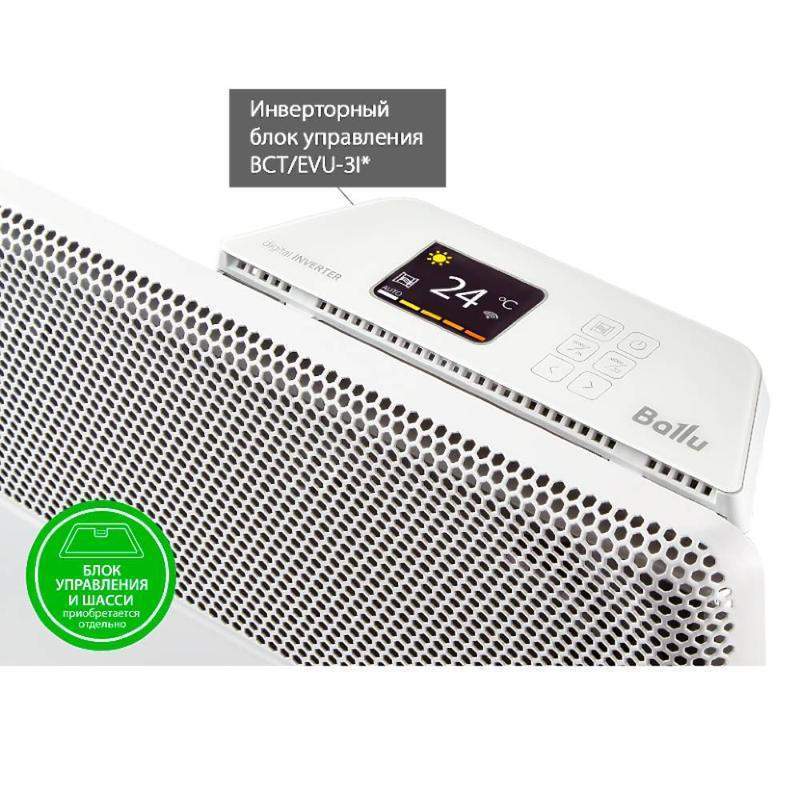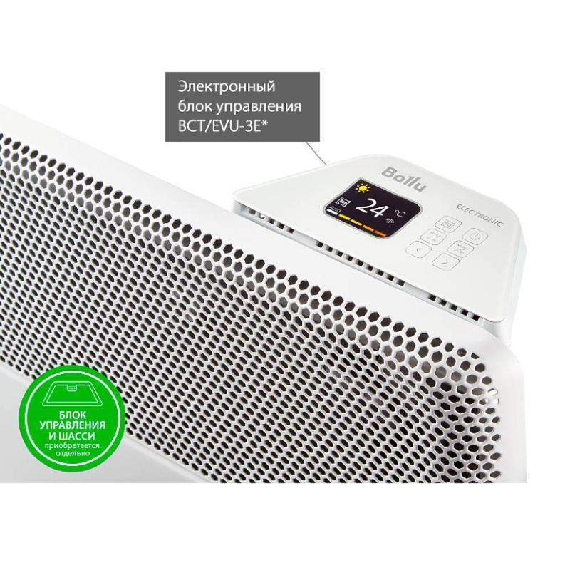 Конвектор Apollo Transformer System — новый лидер категории: в нем продумано все до мельчайших деталей._x000D_ _x000D_ Приборы серии Apollo оснащены современным бесшумным нагревательным элементом HEDGEHOG, который выходит на рабочую температуру на 20% быстрее, имеет сверхкомпактные размеры и увеличенную площадь теплоотдачи. Для конвекторов нового поколения 3.0 Ballu предлагает 3 вида блоков управления на выбор: классический механический, электронный и энергосберегающий digital INVERTER. При использовании инверторного блока, оснащенного полноразмерным цветным дисплеем, емкостными сенсорными кнопками и датчиком открытого окна, достигается экономия электроэнергии до 70%._x000D_ _x000D_ Кроме того, конвектор Apollo можно дополнительно укомплектовать Wi-Fi-модулем, чтобы подключить к сети и управлять им через мобильное приложение HOMMYN. Завершающий этап – выбор типа установки конвектора: напольный или настенный. Так, в вашем распоряжении оказывается конвектор, идеально подходящий именно вам. В комплект входит только отопительный модуль, оснащенный нагревательным элементом HEDGEHOG. Для работы конвектора необходимо добавить в комплект один из трех блоков управления (обязательно) и шасси (не обязательно). Варианты блоков управления представлены в разделе "Сопутствующие товары". Эффективен для помещений, площадью до 30 м2;.