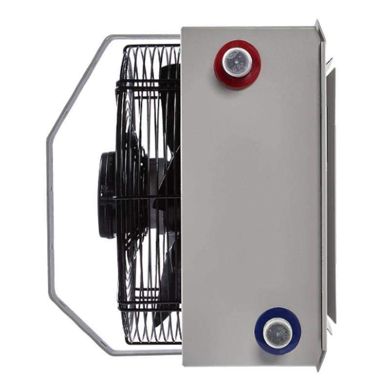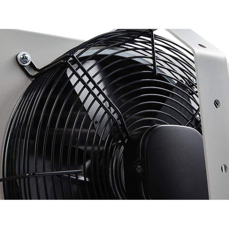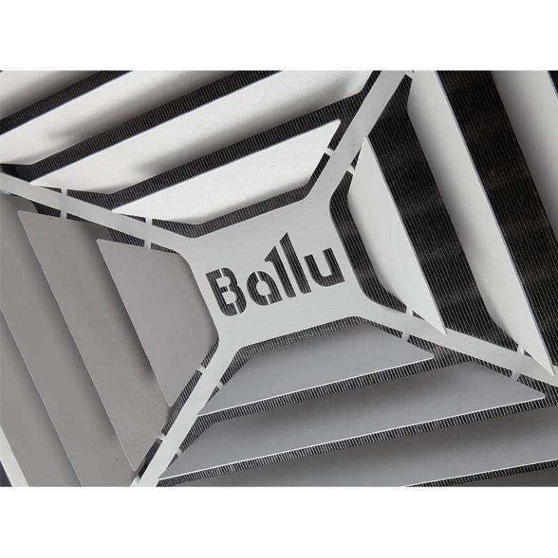 Водяной тепловентилятор Ballu BHP-W4-20-D – прибор для обогрева небольших помещений высотой до 4-х метров. Тепловая мощность прибора от 15 до 26 кВт в зависимости от режима производительности и температуры теплоносителя. Максимальная рабочая температура теплоносителя – 120°С при давлении 15 бар, что позволяет использовать в качестве теплоносителя пар и перегретую воду. Осевой вентилятор диаметром 330 мм создает воздушный поток длиной 5 метров и обеспечивает максимальную производительность до 1600 куб.м/ч. Водяной тепловентилятор устанавливается преимущественно на потолок при помощи кронштейна, который входит в комплект поставки. Выходная решетка в форме анемостата распределяет теплый воздушный поток в четырех направлениях.