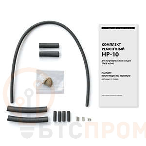 Комплект ремонтный НР-10 применяется при ремонте поврежденных нагревательных секций ТЛБЭ и БНК (на основе двужильного кабеля) в «полевых» условиях с помощью ремонтного комплекта НР-10. Ремонт выполняется установкой ремонтных муфт, обеспечивающих восстановление поврежденного нагревательного кабеля. Установку ремонтных муфт допускается производить при температуре воздуха не ниже минус 5 °С. Материалы и комплектующие для изготовления одной ремонтной муфты: - Трубка термоусаживаемая SPL 6.0/1.4, L = 25 мм - 4 шт. - Трубка термоусаживаемая SPL 11.0/1.6, L = 55 мм - 2 шт. - Трубка термоусаживаемая SPL 11.0/1.6, L = 100 мм - 2 шт. - Трубка медная 4?0.75 мм, L = 10 мм - 2 шт. - Трубка медная 3?0.5 мм , L = 10 мм - 2 шт. - Трубка медная 5?0.5 мм, L = 5 мм - 2 шт. - Герметик-клей КР-1Б ГИПК 14-13 - 20 г. - Установочный провод, НУ 3?1,0, L = 0,5 м - 1 шт. В комплект поставки входят: Инструкция по монтажу комплекта ремонтного НР-10 - 1 шт. Пакет с защелкой 15?20 - 1 шт. Стикер со штрих-кодом «Комплект ремонтный НР-10» - 1 шт.