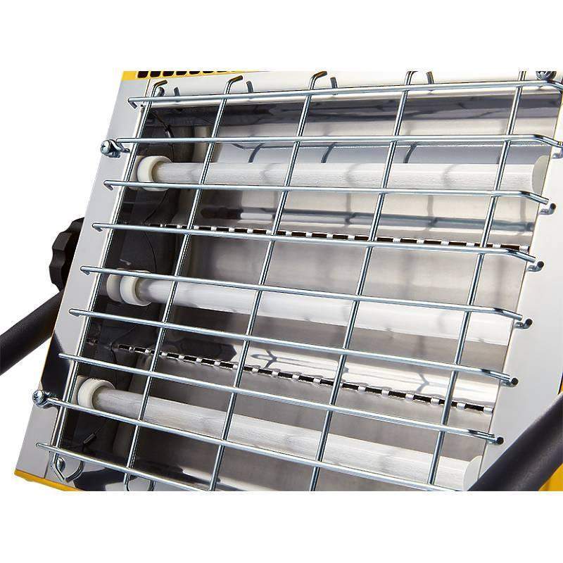 Мобильный ламповый инфракрасный обогреватель BIH-LM-1.5-R – универсальный обогреватель мощностью до 1.5 кВт. Прибор имеет 3 режима работы и обеспечивает мощный, направленный обогрев даже на ветру и при отрицательных температурах. В конструкции применена система Rotate system с фиксаторами угла наклона, позволяющая направить излучение обогревателя на необходимую высоту. Благодаря специальной опоре на защёлках, прибор можно повесить на стену. Прочный стальной корпус защищает прибор от ударов и механических повреждений. Кварцевые инфракрасные лампы защищены хромированной решеткой. Идеально подходит для локального обогрева рабочих мест на стройплощадках, на малых производствах, для быстрой разморозки механизмов, трубопроводов, для осушения стен и окрашенных поверхностей. Назначение Применение: Обогрев рабочих зон строительных площадок, производственных и складских помещений, мастерских и гаражей. Осушение при проведении ремонтных и отделочных работ. Дополнительный обогрев: открытые площадки, шатры, палатки. Сфера применения Прибор представляет рабочий инструмент для направленного обогрева рабочих зон и участков с возможностью быстрой и удобной переноски. Приборы подходят для локального обогрева рабочих мест в мастерских, СТО, на стройплощадках, в подсобных помещениях, на малых производствах, для быстрой разморозки механизмов, трубопроводов, для осушения стен и окрашенных поверхностей. Отличительные особенности * Новый класс обогревателей: мобильный ламповый ИК обогреватель – «инфракрасная пушка» * Три режима мощности 1500/1000/500 Вт * Возможность подвеса на стену * Регулировка угла наклона * Моментальный нагрев * Возможность применения на открытых площадках и в полуоткрытых помещениях * Ощущаемая тепловая мощность в 2 раза выше номинальной * Сохраняет эффективность даже на ветру и морозе * Дополнительный конвективный обогрев * Стальная защитная решетка-гриль для защиты от случайного касания нагревательного элемента * Гарантия 2 года