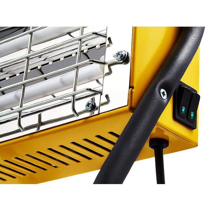 Мобильный ламповый инфракрасный обогреватель BIH-LM-1.5-S – универсальный компактный обогреватель мощностью до 1,5 кВт. Обогреватель имеет 3 режима работы. Для создания комфортной температуры в помещении прибор использует систему комбинированного конвективно-инфракрасного обогрева, основное действие которой распространяется на все предметы в зоне обогрева, а дополнительное достигается благодаря особой форме корпуса. Установить прибор в ударопрочном корпусе можно на съемные опоры. Идеально подходит для локального обогрева рабочих мест в мастерских, СТО, на стройплощадках, в подсобных помещениях, на малых производствах, для быстрой разморозки механизмов, трубопроводов, для осушения стен и окрашенных поверхностей. Применение: Обогрев рабочих зон строительных площадок, производственных и складских помещений, мастерских и гаражей. Осушение при проведении ремонтных и отделочных работ. Дополнительный обогрев: открытые площадки, шатры, палатки. Прибор представляет рабочий инструмент для направленного обогрева рабочих зон и участков с возможностью быстрой и удобной переноски. Приборы подходят для локального обогрева рабочих мест в мастерских, СТО, на стройплощадках, в подсобных помещениях, на малых производствах, для быстрой разморозки механизмов, трубопроводов, для осушения стен и окрашенных поверхностей. Отличительные особенности * Ощущаемая тепловая мощность в 2 раза выше номинальной * Сохраняет эффективность даже на ветру и морозе * Дополнительный конвективный обогрев * Увеличенный угол излучения для максимально эффективного обогрева * Стальная защитная решетка-гриль для защиты от случайного касания нагревательного элемента * Устойчивые опоры для напольного размещения * Удобная ручка для переноски обогревателя * Компактные размеры корпуса * Гарантия 2 года