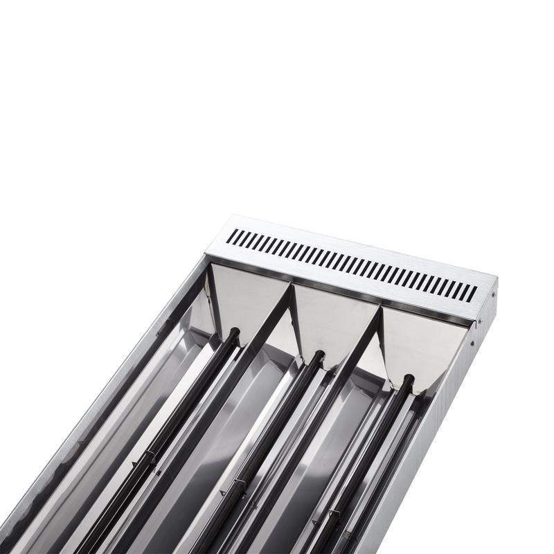Инфракрасный обогреватель Ballu BIH-T2-4.5 мощностью 4,5 кВт предназначен для направленного интенсивного обогрева в любых условиях, даже на ветру и в минусовую температуру. Оптимальное решение для обогрева помещений с высокими потолками, большими теплопотерями и открытых площадок. Модель оснащается уникальными параболическими отражателями для создания направленного сфокусированного теплового потока и обеспечения эффективного локального обогрева. Нагревательными элементами служат высокотемпературные ТЭНы с оболочкой из спецсплава Incoloy® с высоким содержанием никеля и титана для долговременной эксплуатации в тяжелых условиях. Обогреватель имеет высокую степень пылевлагозащиты IP54 и может применяться во влажных помещениях и на открытом воздухе. В комплект входит многофункциональный поворотный кронштейн, позволяющий установку обогревателей на потолок или стену под углом для равномерного обогрева с разных сторон. Инфракрасные обогреватели способны обеспечить комфорт человека даже на открытом воздухе. На верандах кафе и ресторанов они позволяют продлить летний сезон. Как правило, в этих случаях применяются приборы с наибольшей температурой поверхности. Интенсивный тепловой поток с поверхности прибора дает возможность обеспечить обогрев людей даже на открытых площадках в холодное время года. Сфера применения Стационарный обогрев складов, производственных цехов, вестибюлей вокзалов и других промышленных помещений. Отличительные особенности * Мощные промышленные ИК обогреватели с открытым ТЭНом для долговременной эксплуатации в тяжелых условиях * Пылевлагозащита IP54 – высокая пылевлагозащита для эксплуатации на улице и в загрязнённых помещениях * Уникальный параболический отражатель создаёт в 2 раза более сфокусированный тепловой поток и обеспечивает эффективный локальный обогрев при монтаже на высоте 6 м и выше * ТЭНы с оболочкой из спецсплава для долговременной работы при повышенных нагрузках * Поворотные кронштейны для подвеса на потолок или стену * Возможность монтажа под углом к горизонту делает эксплуатацию прибора максимально комфортной и универсальной * Кабельный вывод для подключения и удобный герметичный коннектор * Корпус из оцинкованной стали