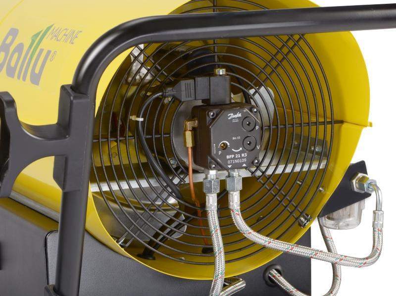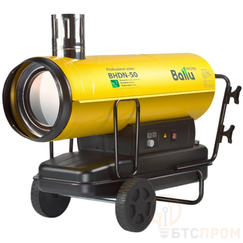Тепловая дизельная пушка непрямого нагрева Ballu BHDN-50 серии Tundra – это мощный теплогенератор, применяемый для обогрева жилых и нежилых помещений, либо для локального прогрева рабочих поверхностей. Воздух из помещения при помощи вентилятора, расположенного в основании пушки втягивается внутрь корпуса и, частично попадая в горелку теплообменника, который является камерой сгорания, смешивается с распылённым форсункой дизельным топливом, образуя воздушно-топливную смесь, которая автоматически поджигается посредством 12kV электродов. Нагретый воздух вместе с продуктами сгорания, пройдя через теплообменник- выбрасывается наружу из дымохода, расположенного в верхней части корпуса пушки. Весь остальной объём воздуха, обтекая теплообменник нагревается и выбрасывается в обогреваемое помещение, не смешиваясь с продуктами сгорания. Топливо из топливного бака подаётся на форсунку высокопроизводительным топливным насосом Danfoss. Электронная плата управления следит за процессом горения при помощи температурного и фото- датчиков и отключает работу пушки в случае отсутствия горения пламени, подачи электропитания, срабатывании регулировочного термостата , возникновения аварийной ситуации. Вентилятор продолжает некоторое время работать после выключения пушки, охлаждая камеру сгорания и корпус теплообменника – тем самым предотвращая деформацию теплообменника. В корпус топливного бака интегрирован указатель уровня дизельного топлива. Воздушный фильтр совместно с топливным фильтром продлят работу форсунки и обеспечат бесперебойную работу при условии использования качественного дизельного топлива. Двухстороннее антикоррозионное покрытие корпуса воздухонагревателя сохранит превосходный внешний вид на протяжении всего срока использования изделия. Корпус дизельной тепловой пушки Ballu BHDN-50 серии Tundra имеет специальные рёбра жёсткости на кожухе и дополнительную поддержку, предотвращая деформацию и сохраняя необходимую для работы теплогенератора геометрию на весь срок эксплуатации. Отличительные свойства: Низкотемпературный кожух специальной формы Дополнительная поддержка корпуса тепловой пушки Высокий уровень КПД близкий к 100% Мощная трансформаторная система розжига 12 kV с электронным управлением Встроенный термостат повышенной чувствительности (позволяет поддерживать установленную температуру в обогреваемом помещении) Система контроля пламени с фотоэлементом Многоуровневая система безопасности с электронным управлением Дополнительная защита от высекания пламени Металлический корпус с теплоотражающим экраном Двухстороннее антикоррозионное покрытие корпуса Ударопоглощающие колёса из резины Удобные рукоятки для перемещения Высокопроизводительный насос подачи топлива Встроенный датчик уровня топлива Вентиляционные отверстия в блоке управления Армированные топливные шланги
