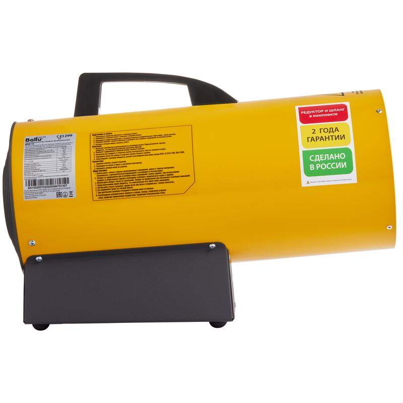 Газовые тепловые пушки BALLU серии BHG-10 – это мощные профессиональные теплогенераторы, работающие на сжиженном газе пропане и пропан-бутане. Практически нечувствительны к резким перепадам температур и легко переносят транспортировку. Металлический корпус газовой пушки обладает теплоотражающими свойствами и надежно защищен антикоррозионным покрытием, даже при использовании агрегата во влажных помещениях. Благодаря наличию многоуровневой защитной автоматики, тепловая пушка самостоятельно выключается при исчерпании запасов топлива и перекрывает подачу газа в случае погасания пламени или при перегреве. Назначение Быстрый обогрев помещений Зональный обогрев Просушка Отличительные свойства: Мощный направленный поток горячего воздуха Высокий уровень КПД, близкий к 100% Бездымное сгорание топлива Удобный и надежный пьезорозжиг Камера сгорания из оцинкованной стали Удобная ручка для транспортировки Армированный газовый шланг 2м с редуктором давления в комплекте Долговечное антикоррозийное покрытие корпуса Защитная термопара Биметаллический предохранитель Автоматическое прекращение подачи газа при отсутствии электропитания При устранении причин срабатывания системы безопасности, автоматическая подача газа не производится Отсекатель из жаростойкой стали с мелкими отверстиями (диаметром 1мм) предотвращает воспламенение внутри горелки при сниженном давлении газа Гарантия на прибор 2 года. Сделано в России
