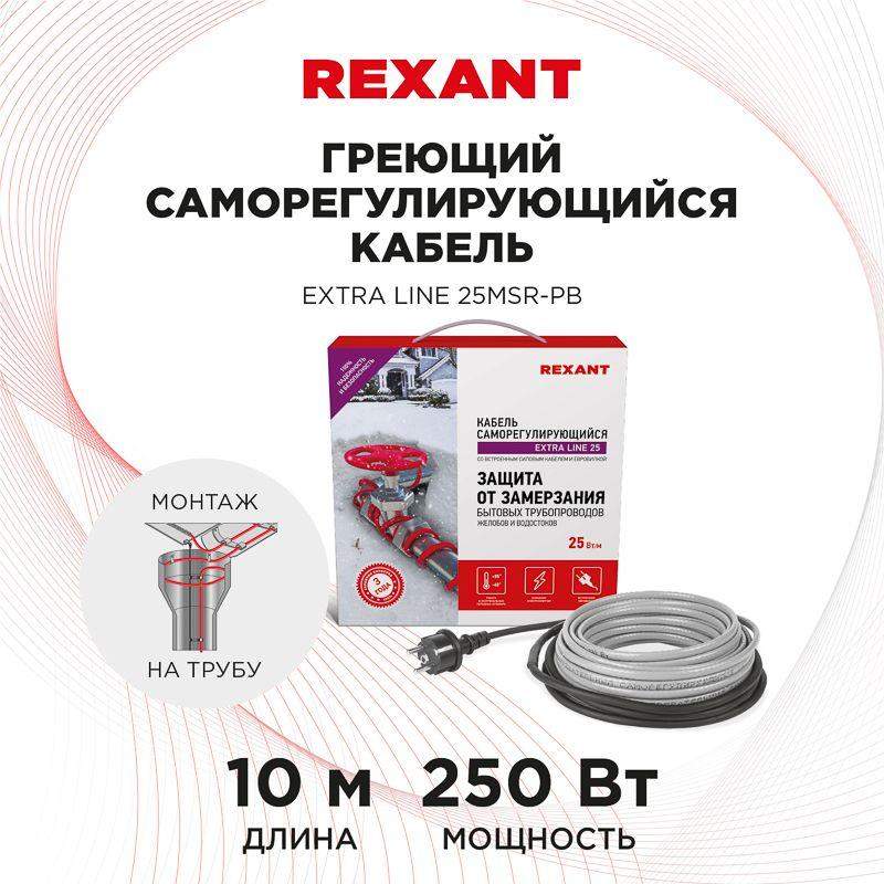 Кабель греющий саморег. Extra Line (комплект для труб водостоков кровли) 25MSR-PB 2M (10м/250Вт) REXANT 51-0645