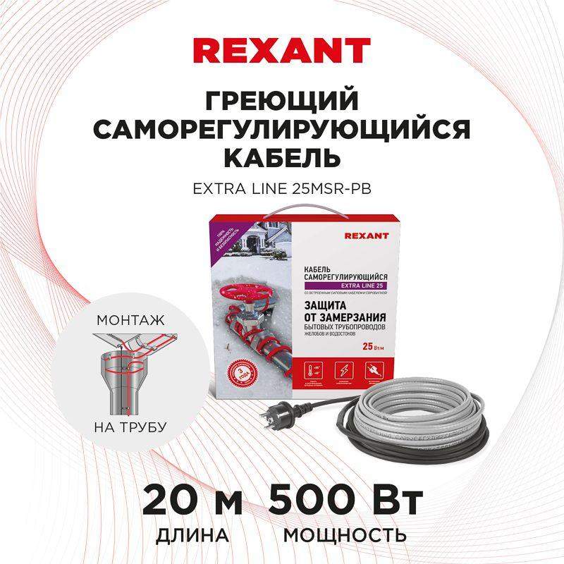 Кабель греющий саморег. Extra Line (комплект для труб водостоков кровли) 25MSR-PB 2M (20м/500Вт) REXANT 51-0647