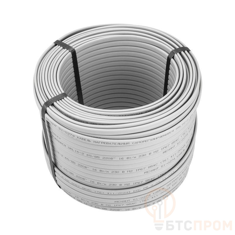 Греющий пищевой кабель REXANT мощностью 16 Вт/м предназначен для защиты от замерзания бытовых трубопроводов среднего диаметра, счетчиков воды, вентилей и т. д. Саморегулирующийся кабель меняет теплоотдачу в зависимости от температуры окружающей среды. Монтаж кабеля осуществляется в рукав под теплоизоляцию на металлические или пластиковые трубы. При установке провод может пересекаться сам с собой. Подключение к сети осуществляется через распаячную коробку. Минимальный радиус изгиба кабеля при монтаже витками составляет 40 мм. Сечение токопроводящих жил: 0,9 мм2. Максимальная длина секции: 105 м. Коэффициент пускового тока: 3,7 при +10°С. Материал токопроводящих жил: луженая медная проволока.